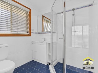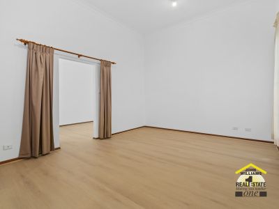 The home includes three bedrooms, each with built-in robes, conveniently located along a private service way and serviced by a main bathroom that boasts a corner spa bath. Upstairs, the parents' retreat is a standout, featuring a spacious bedroom with a private balcony, ensuite, walk-in robe, and additional built-in storage, creating a tranquil escape. The property has just had new paintwork, hybrid flooring & blinds.