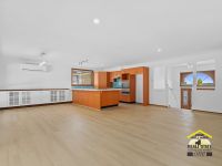 Upon entering, you're welcomed by formal lounge and dining rooms featuring high ceilings and large windows that fill the space with natural light. These areas seamlessly connect to the open-plan design, centered around a well-appointed kitchen equipped with a gas cooktop, dishwasher, and ample storage.